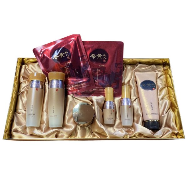 This limited edition gift set features a range of Soosul’s premium anti-aging collection, formulated with the rare SangHwang Mushroom for visible skin vitality and improved resilience.